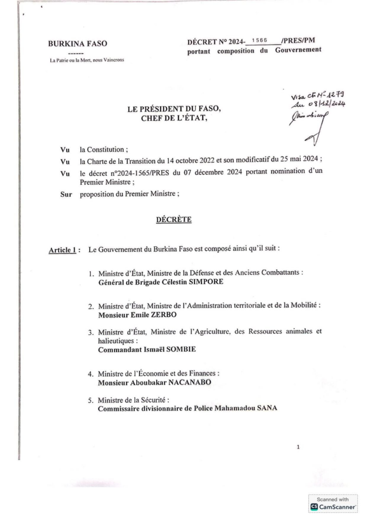Au Burkina-Faso, le nouveau Gouvernement est connu. 24 heures après sa nomination, le Premier ministre Rimtalba Jean Emmanuel Ouédraogo a constitué ce dimanche 08 décembre 2024 une équipe de 24 membres. Ci-dessous la liste.