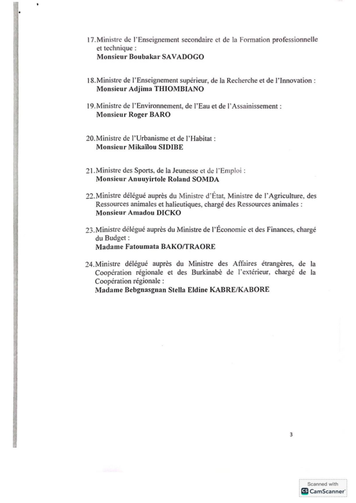 18. Ministre de l’Enseignement supérieur, de la Recherche et de l’Innovation : Monsieur Adjima THIOMBIANO